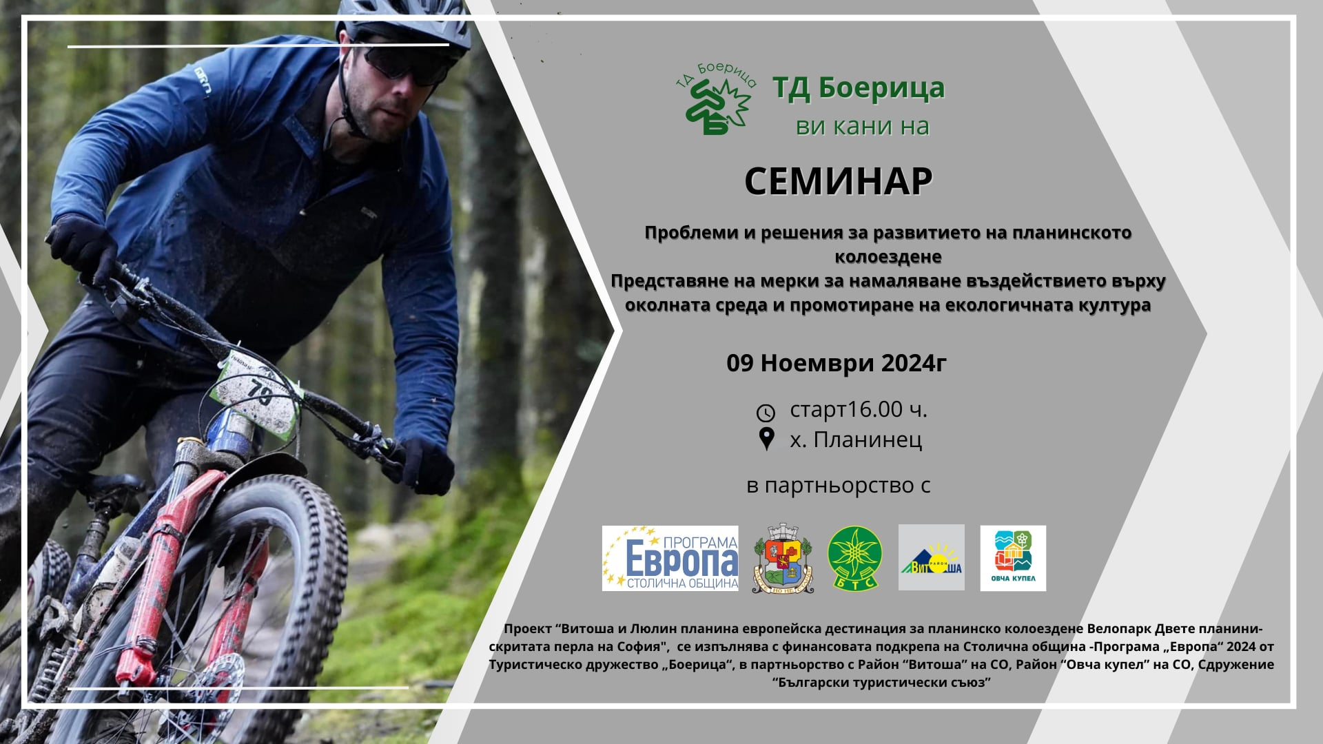 Семинарът ще се проведе на 09.11.2024 г., събота, от 16:00 в хижа „Планинец“ в ПП „Витоша“.