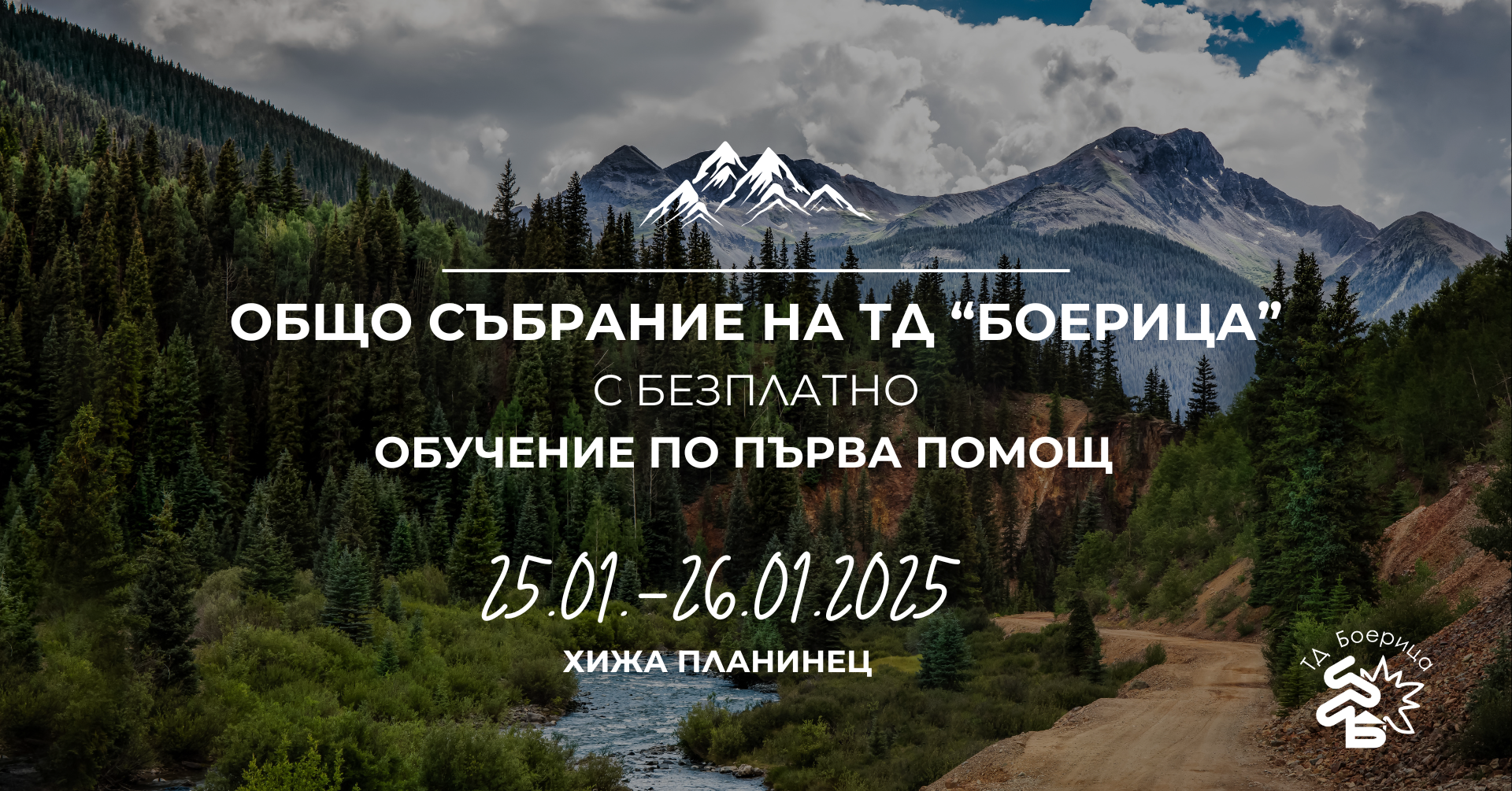 хижа ПланинецНа 25.01.2025 г. (събота) от 17:30 ч. в хижа "Планинец" в парк Витоша ще се проведе Общото събрание на Сдружение Туристическо дружество "Боерица". През съботния ден, между 14:00 и 18:00 часа, всички членове на дружеството могат да се включат в обучение по първа помощ, водено от Академия "Първа помощ". Основните теми, които ще бъдат засегнати